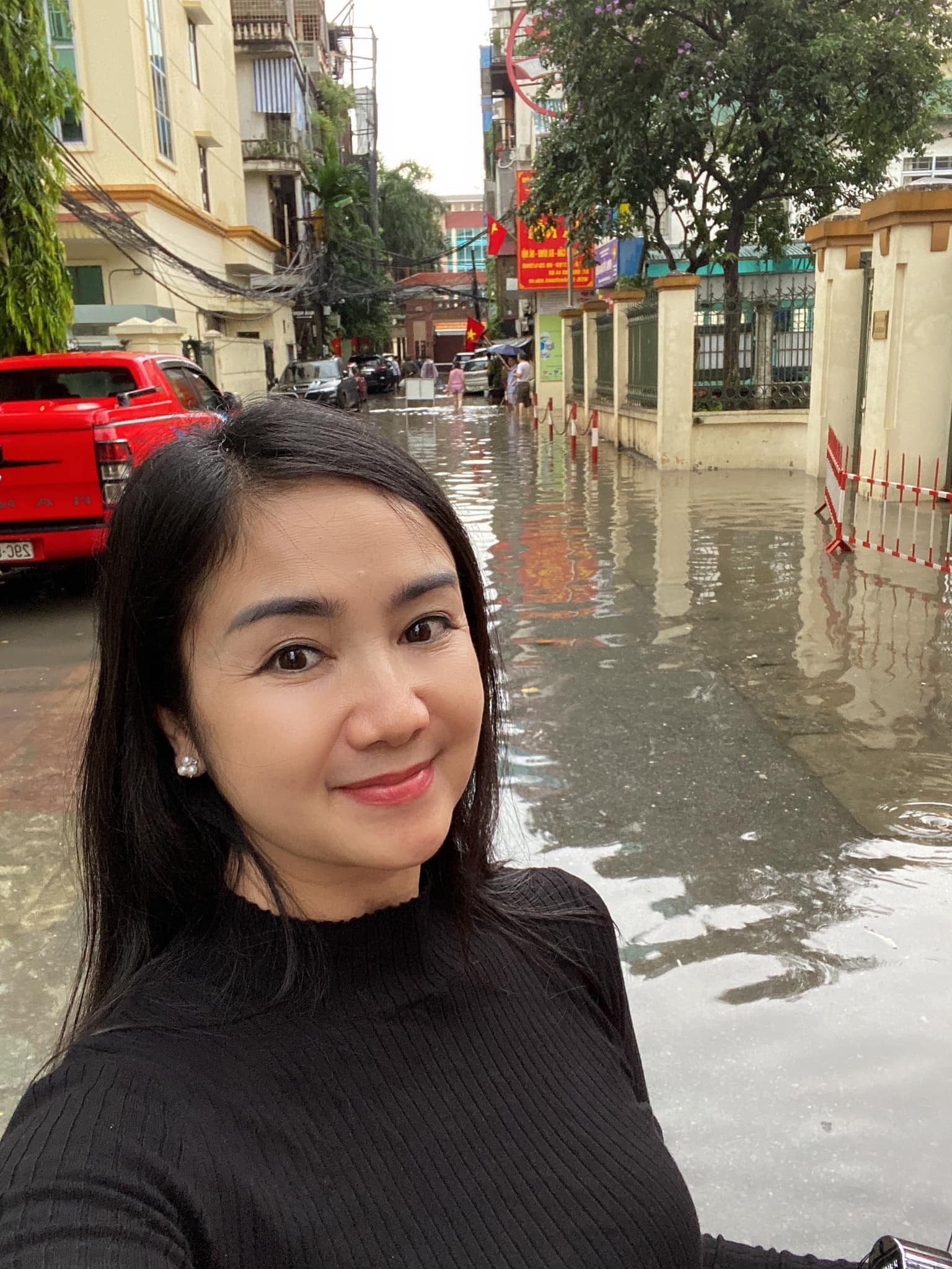 NSND Thu Hà là một trong những người bị ảnh hưởng bởi cơn mưa lớn tại Hà Nội chiều tối 29/5.