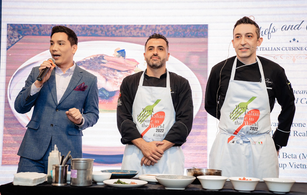Tại sự kiện, những người yêu mến ẩm thực của đất nước hình chiếc ủng xinh đẹp đã có cơ hội trải nghiệm ẩm thực chuẩn Italia thông qua phần “cooking show” ngay trên sân khấu. Đặc biệt là màn tương tác thú vị giữa 5 vị đầu bếp Italia nổi tiếng và 4 vị khách mời đặc biệt.