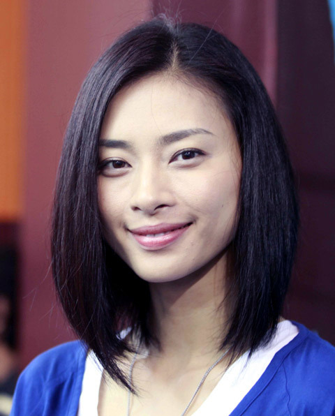 Diễn viên Ngô Thanh Vân "xì trum" trang phục xanh.