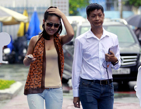 Đạo diễn Lê Hoàng đội mưa đi xem phim Xì trum