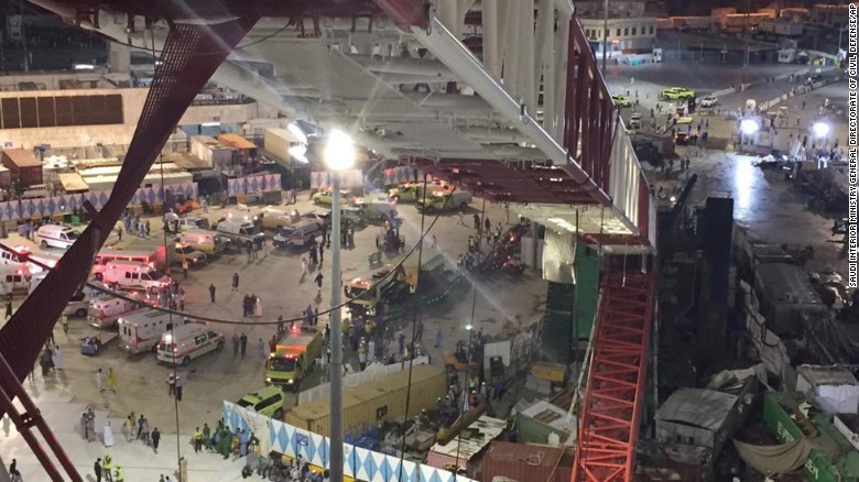 Theo tin mới nhất của kênh CNN, 107 người đã thiệt mạng, 238 người khác bị thương trong vụ sập cần cẩu ở Đại Thánh đường, hay còn gọi là Masjid al Haram, một trong những thánh đường quan trọng nhất của Hồi giáo.