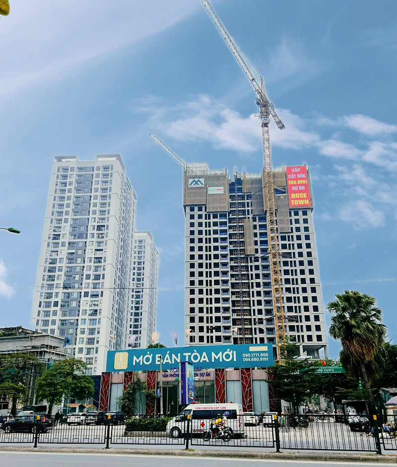 Theo đại diện chủ đầu tư, liên danh chủ đầu tư Xuan Mai Corp. và Công ty CP sản xuất Bao Bì và Hàng Xuất khẩu (Promexco) sẽ tiến hành cất nóc DV01 - tòa căn hộ cuối cùng tại dự án Rose Town trong tháng 12/2022. Tòa căn hộ cao 27 tầng nổi, 3 tầng hầm với hơn 270 căn hộ cao cấp có diện tích từ 70 - 104m2, bố trí 2 - 3 phòng ngủ. Cột mốc cất nóc tòa nhà là một bước tiến quan trọng trong quá trình “về đích” của dự án.
