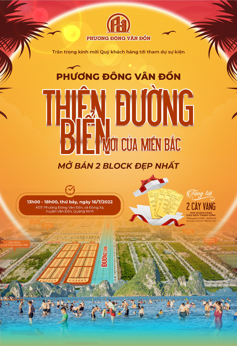 Thông tin đăng kí tham dự sự kiện ra mắt dự án Phương Đông Vân Đồn: Thời gian: Thứ Bảy ngày 16/7/2022 Địa điểm: Khu đô thị Phương Đông, Khu kinh tế Vân Đồn, Quảng Ninh Website: http://www.phuongdongvandon.com.vn/ Đơn vị phân phối chính thức: Đất Xanh Miền Bắc: 0917 612 020; Hải Phát Land: 0901 061 999. |