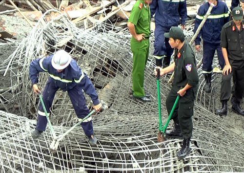 Một công nhân cho biết, trong lúc đang thi công nghe tiếng “ầm” cả khối bê tông khổng lồ đổ ập xuống, ai cũng lo chạy thoát thân