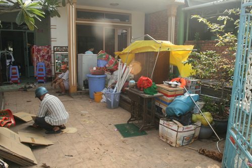 | Ở tạm trong sân nhà (Ảnh: Trần Chánh Nghĩa) |