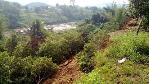 Vị trí sạt lở ăn sâu vào vườn tược của người dân từ 10 - 40m, cuốn đi nhiều diện tích vườn trồng cây ăn quả, cây điều, khoai mì…