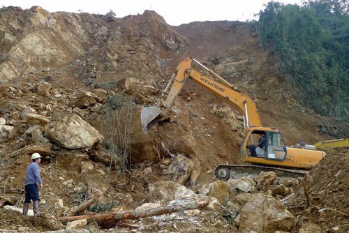 phóng đất đá, khoảng 8-10 ngày nữa mới cơ bản thông xe được tuyến chính.
