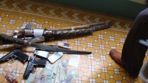 | Tang vật cơ quan chức năng thu giữ trong một đợt trấn áp tội phạm có tổ chức |