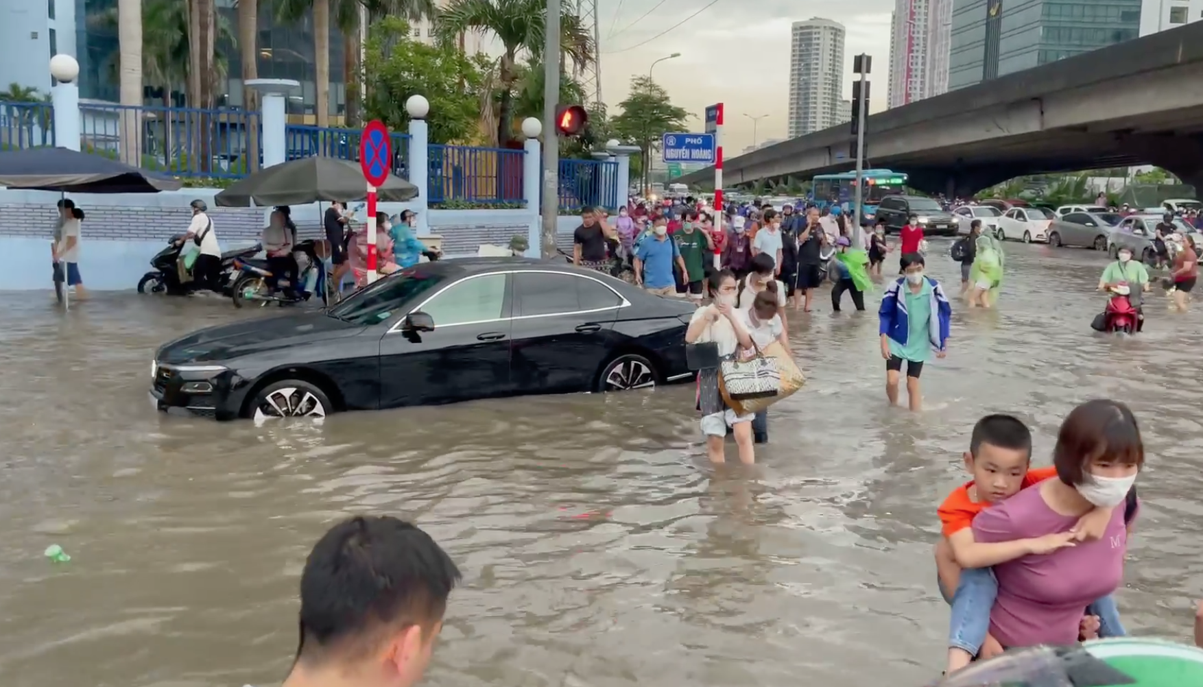 Con đường sau khách sạn La Thành nước ngập đe dọa nhiều ô tô dừng đỗ bên đường. Ảnh: Quốc Đại.Đường Dương Đình Nghệ, gần tòa nhà Keangnam nhiều ô tô chịu trận trước tứ bề là nước. Ảnh: Đức Trần. Cũng gần tòa nhà Keangnam, nhiều ô tô chết máy phải đẩy lên chỗ cao. Ảnh: Đông ĐôPhía trước đại lý Lexus (phố Dương Đình Nghệ) là cảnh ô tô chết máy chờ đẩy. Ảnh: Hoàng Hiển.Một chiếc Mercedes-Benz chịu trận giữa biển nước và chủ xe chỉ còn cách ...nằm chờ. Ảnh: Tuyến Minh.Đường Tố Hữu không còn phân biệt đâu là đường, nơi nào là vỉa hè. Ảnh: Hồ Hoàng Hải.Phố Tô Hiệu, một biển số xe ô tô đánh rơi khi qua đoạn ngập, người dân treo lên cột điện để chủ xe quay lại tìm sau. Ảnh: Huy NguyenÔ tô, người đi bộ không phân biệt, tất cả đều cùng nhau lội nước. Ảnh: Nguyễn Vũ Trung Anh