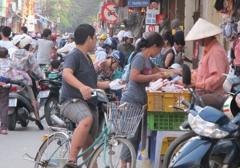 | Cảnh mua bán bánh "đại hạ giá" tại khu phố Trương Định |