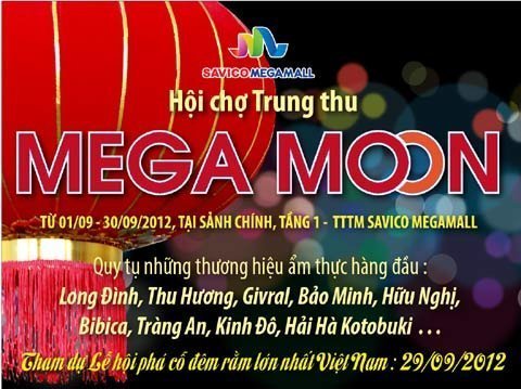 Đón hội đêm rằm, Savico Megamall áp dụng Chương trình Khuyến mại hấp dẫn “Tham gia là trúng” trong khoảng thời gian từ 15/09/2012 đến hết 15/10/2012. Chỉ với tổng các hóa đơn có giá trị cộng dồn trong ngày từ 2 triệu đồng trở lên, khách hàng sẽ được tham gia vào Vòng quay may mắn khổng lồ để có cơ hội trúng ngay một trong hàng ngàn giải thưởng có giá trị.