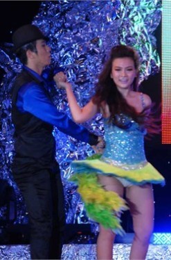 | Ca sĩ Lưu Hương Giang bất ngờ lộ ngực khi trình diễn (ảnh Ngôi sao) |
