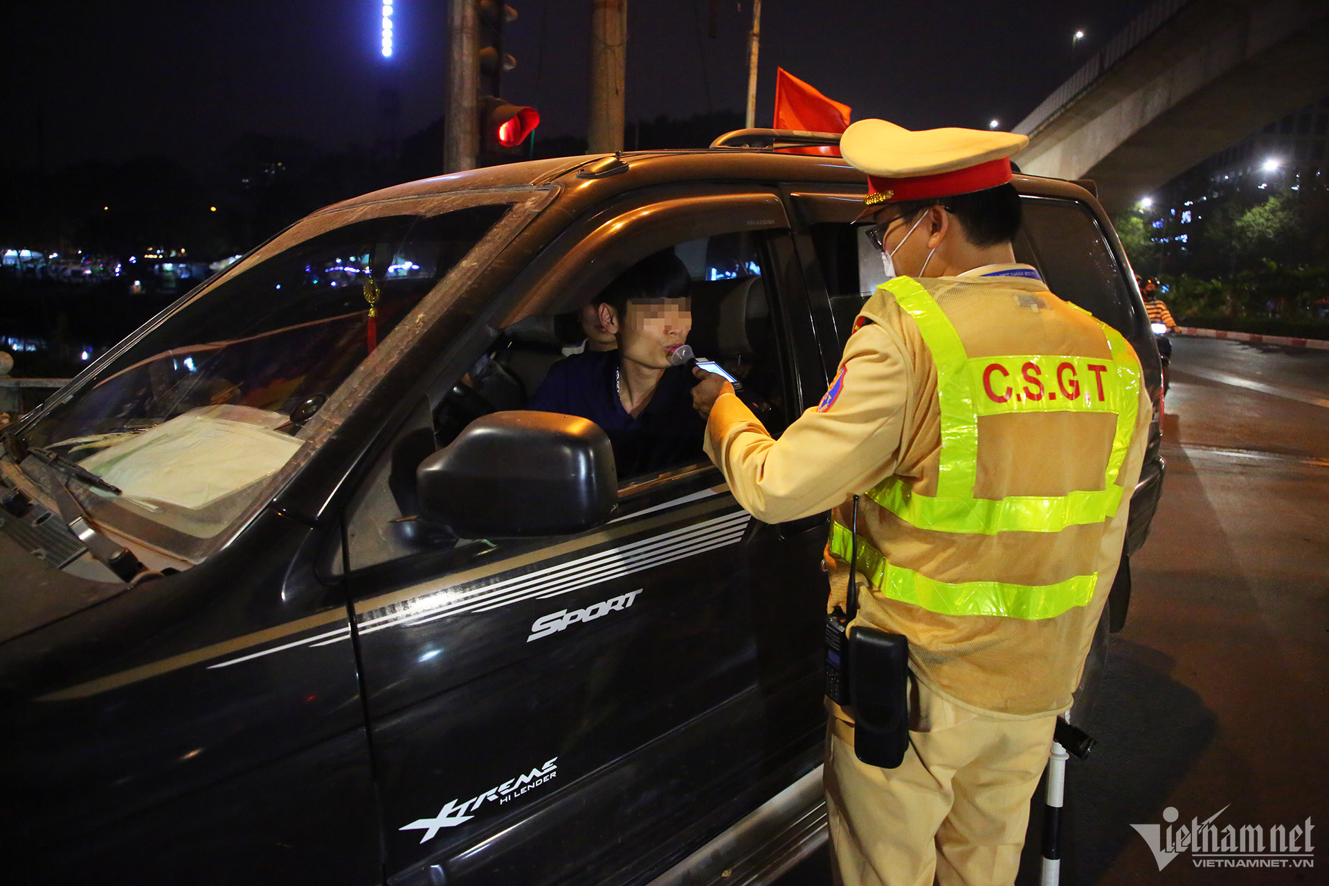 Tối 21/2, tổ công tác của Đội CSGT đường bộ số 7 (Phòng CSGT Công an Hà Nội) lập chốt xử lý vi phạm nồng độ cồn tại nút giao đường Quang Trung - Phùng Hưng (quận Hà Đông).