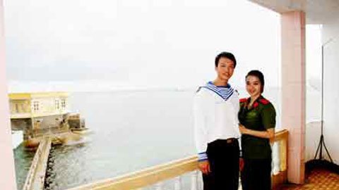 | Thu Thảo với chiến sĩ ở quần đảo Trường Sa |