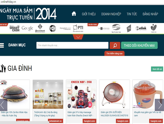 Hiện tại, người tiêu dùng đã có thể truy cập vào website chính thức của “Ngày mua sắm trực tuyến 2014” tại các địa chỉ: www.NgayMuaSamTrucTuyen.vn và www.onlineFriday.vn để tìm kiếm những ưu đãi, khuyến mại của các doanh nghiệp trong ngày 5/12/2014. Danh sách các doanh nghiệp cùng những sản phẩm, dịch vụ được khuyến mại trong “Ngày mua sắm trực tuyến 2014” sẽ được cập nhật liên tục trên website.