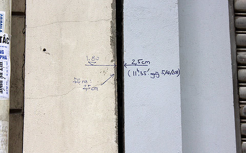 “Nhà số 366 Cầu Giấy thì đã bị tách ra khỏi nhà 364 mấy năm rồi, chúng tôi đã tiến hành lập biên bản giữa các hộ về sự việc, vết nứt tách chỗ hẹp nhất là 5cm, chỗ rộng nhất là hơn 21cm”, ông Hùng nói..