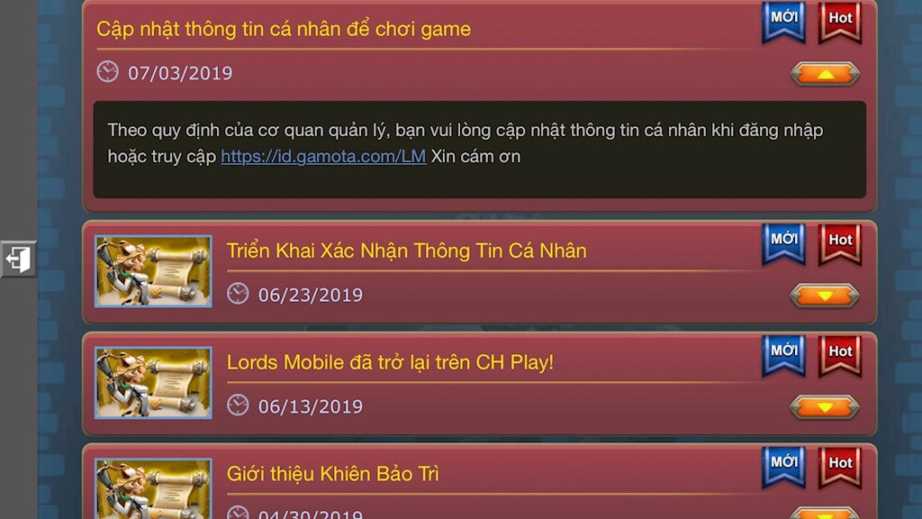Theo Gamota, Lords Mobile đã đáp ứng hoàn toàn tất cả các yêu cầu từ Cục PTTH - Bộ TTTT như bắt buộc đăng ký thông tin người chơi, có logo giới hạn độ tuổi, đặt hệ thống máy chủ tại Việt Nam và có hệ thống kênh nạp tuân thủ theo quy định của pháp luật.