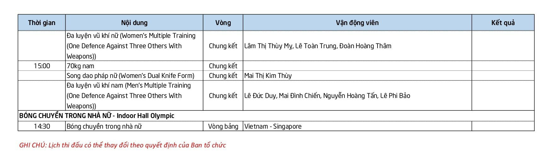 Ngoài ra, vào lúc 16h00, tuyển nữ Việt Nam có trận đấu cuối vòng bảng gặp Philippines. Thầy trò HLV Mai Đức Chung chỉ cần hòa là giành vé đi tiếp với ngôi nhất bảng.