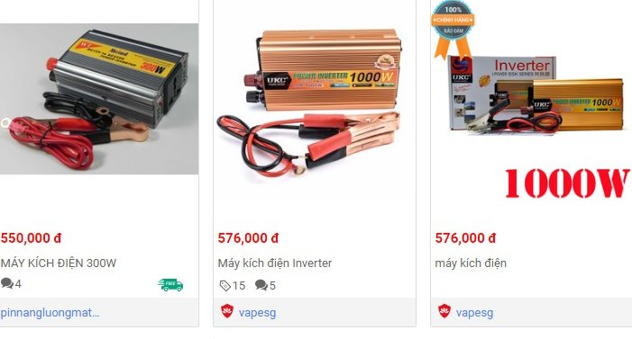 Trong khi đó, Lazada.vn rao bán loại máy kích điện tự chế với giá 800.000 đồng.