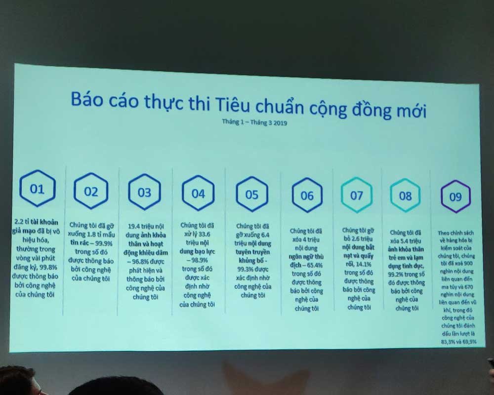 “Chúng tôi muốn Facebook trở thành một môi trường lành mạnh, nơi mọi người có thể thoải mái thể hiện mình, kết nối với nhau và với những vấn đề mà họ quan tâm. Chúng tôi hiểu rằng mọi người sẽ chỉ làm như vậy nếu họ cảm thấy an toàn và không bị đe dọa bởi bất kỳ mối nguy hại nào. Đó là lý do tại sao chúng tôi xây dựng nên Tiêu chuẩn cộng đồng chi tiết với sự đóng góp từ các chuyên gia trên khắp thế giới để vạch rõ giới hạn chính xác cho những nội dung độc hại trên nền tảng của mình. Chúng tôi liên tục điều chỉnh chính sách để phù hợp với sự phát triển không ngừng của văn hóa và ngôn ngữ, đồng thời cũng giúp đảm bảo rằng chúng tôi đang làm tất cả những gì có thể để giữ an toàn cho cộng đồng người dùng của chúng tôi ở Việt Nam và trên toàn thế giới”, ông Simon Harari nói.