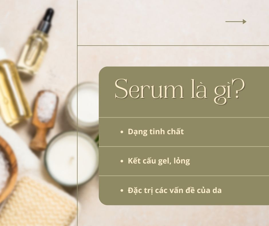 Trong mỹ phẩm, serum là khái niệm về những sản phẩm có dạng huyết thanh/tinh chất. Serum thường có kết cấu lỏng hoặc gel chứa các dưỡng chất có kích thước siêu nhỏ có khả năng len lỏi vào các tầng da, cải thiện các vấn đề của làn da. Các sản phẩm serum trên thị trường hiện tại được chia thành 2 dạng là gốc dầu và gốc nước.