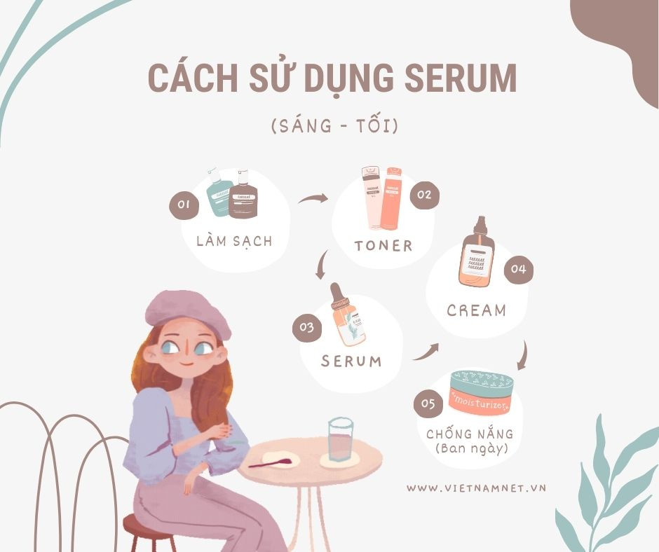 Để serum phát huy tác dụng tốt nhất, bạn cần sử dụng sản phẩm này đúng cách. Dưới đây là những bước sử dụng serum đúng chuẩn, an toàn cho làn da: