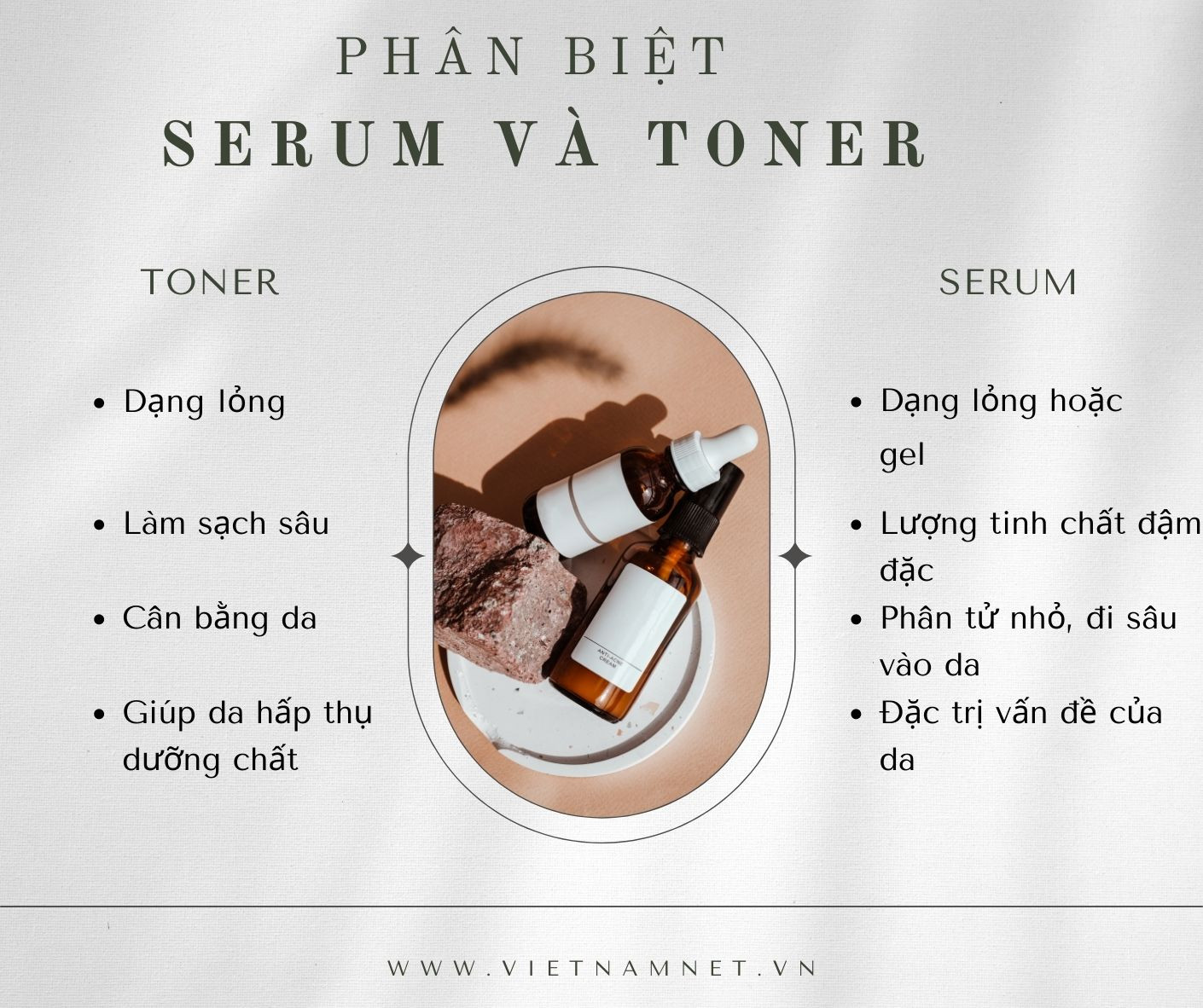 Nhiều người thường nhầm lẫn toner và serum trong chu trình dưỡng da nhưng đây là hai bước chăm sóc độc lập. Mỗi sản phẩm có vai trò khác nhau đối với làn da và có thể hỗ trợ lẫn nhau để phát huy công dụng.