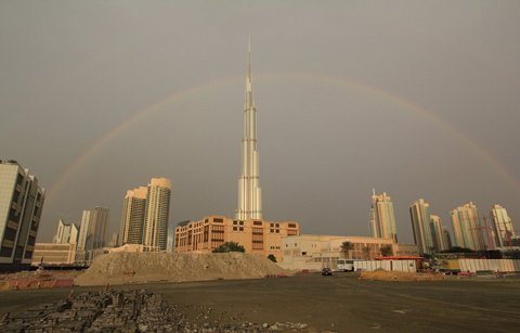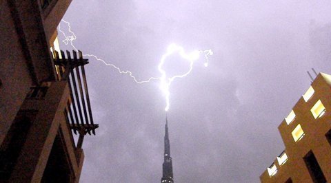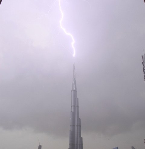 Nhiều luồng sét dữ dội đã ập xuống tòa nhà Burj Khalifa cao 828m. Sét đánh trúng ngọn tháp được xây từ 4.000 tấn thép của tòa nhà, do đó các phần kiến trúc chính của Burj Khalifa không bị ảnh hưởng.