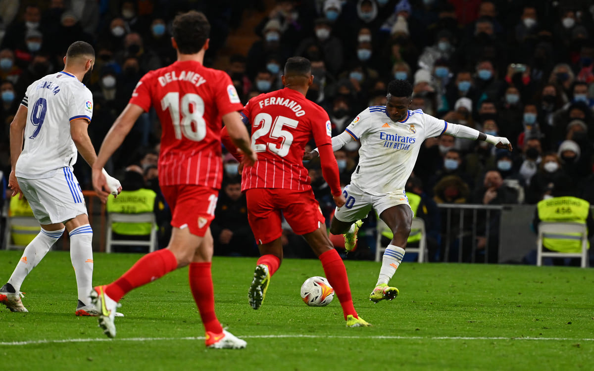 Trong trận lượt đi ở Bernabeu, Sevilla dẫn bàn ngay từ phút 12. Tuy vậy, Benzema gỡ hòa cho CLB Hoàng gia Tây Ban Nha trước khi Vinicius ấn định chiến thắng 2-1.