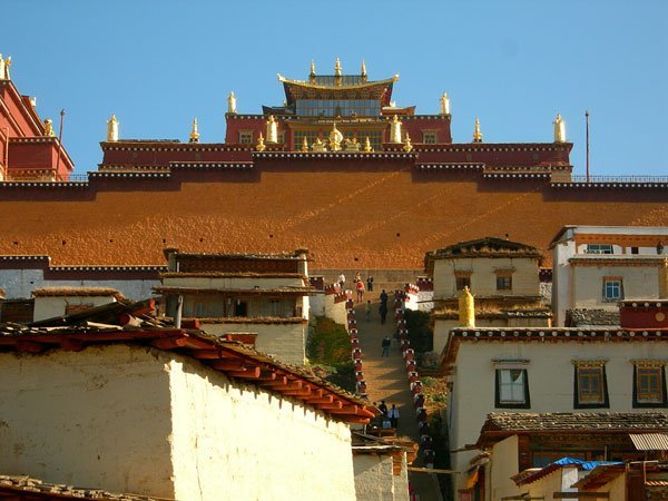 Ngày 2: Từ Côn Minh có thể lựa chọn bay Côn Minh – Shangrila hoặc đi bus (700km) đường rất tốt. Songzalin nằm cách phố cổ Shangrila 5km, vé vào cửa 20 tệ