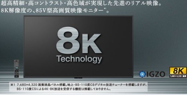 Khi giới công nghệ vẫn đang chìm đắm trong những nét kỳ ảo của công nghệ màn hình 4K, có độ nét gấp 4 lần Full HD hiện nay thì Sharp đã nhanh chóng tiến tới công nghệ màn hình 8K của tương lai.
