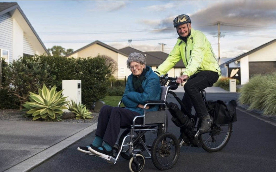 Trước đó, trang Stuff đăng tin, một cụ ông gần 80 tuổi tên Kevin Harvey (New Zealand) cũng nảy ra ý tưởng sáng tạo khi ghép chiếc xe đạp điện cũ vào xe lăn của vợ. Nhờ vậy, ông đã tạo ra một phương tiện thuận lợi để đưa người vợ ngồi xe lăn của mình ra ngoài đi dạo một cách dễ dàng.