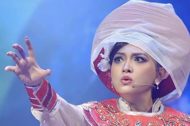 Họ diện trang phục áo dài cách tân, đội mấn to xuất hiện với sân khấu được bài trí cảnh cổ trang. Cả 3 đều hát nhép trên nhạc nền thu sẵn.