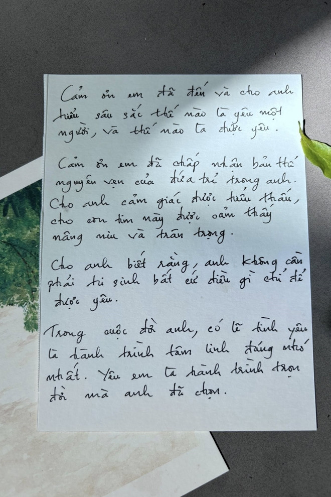 Nam ca sĩ chia sẻ về cảm giác may mắn được tận hưởng cả tình yêu và âm nhạc: "Để tìm được một người chỉ riêng sự hiện diện người đó mang lại bình yên và sự an toàn cho trái tim mình, thật sự không phải điều dễ dàng".