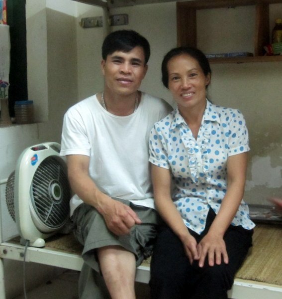 Vợ chồng anh Nguyễn Văn Thỏa tại KTX ĐH Ngoại Ngữ nơi con gái anh thuê trọ