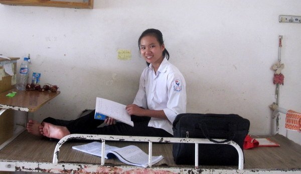 Ngồi cạnh bố, cô bé Nguyễn Thị Thoan (dự thi vào khoa Sư phạm Văn, ĐH Quốc gia) chỉ cười. Em tâm sự: “Nhà em có 4 anh chị em, nhưng hai anh lớn ham chơi suốt khiến bố em phải suy nghĩ rất nhiều. Chị lớn học hết cấp 3 nghe bạn bè rủ rê cũng không thi tốt nghiệp.