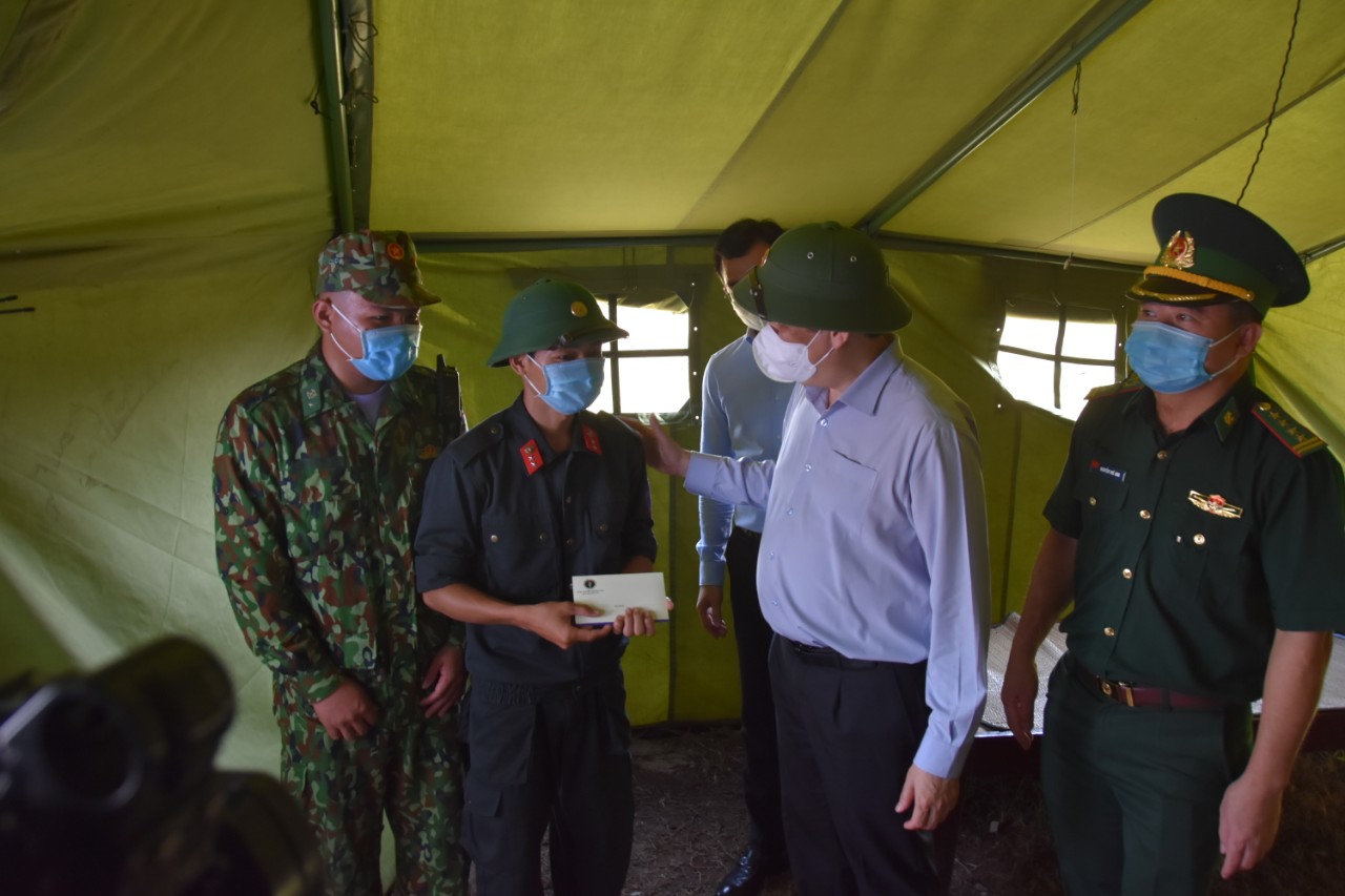 Thay mặt đoàn công tác, GS.TS Nguyễn Thanh Long, Bộ trưởng Bộ Y tế đã thăm hỏi và động viên các lực lượng đang làm nhiệm vụ tại các chốt, điểm gác, chia sẻ với những khó khăn vất vả của các lực lượng khi phải liên tục đóng quân trong thời gian dài với nhiều khó khăn, thiếu thốn trong điều kiện đời sống, sinh hoạt.