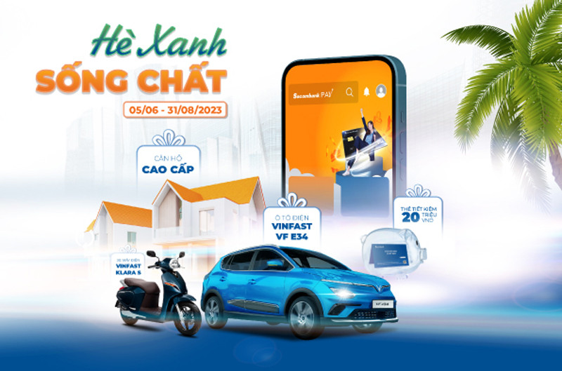 Đặc biệt, cứ mỗi 50 triệu đồng gửi tiết kiệm tại quầy hoặc trực tuyến, người gửi sẽ nhận được 1 mã dự thưởng tham gia chương trình quay số trúng thưởng vào cuối chương trình với nhiều giải thưởng hấp dẫn. Khách hàng Sacoombank gửi tiết kiệm càng nhiều, tích lũy được càng nhiều mã dự thưởng, cơ hội trúng thưởng càng cao. Giải thưởng là bộ quà tặng tổng giá trị hơn 10,5 tỷ đồng, bao gồm: 2 căn hộ chung cư cao cấp hai phòng ngủ tại TP.HCM, 2 ô tô điện VinFast VF e34 kèm pin, 20 xe máy điện VinFast Klara S 2022 kèm pin và 20 thẻ tiết kiệm tích góp siêu linh hoạt trị giá 20 triệu đồng/thẻ.