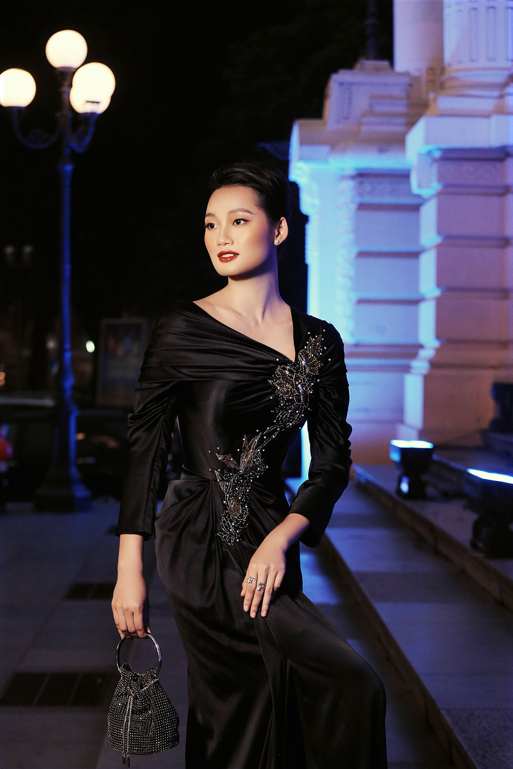 Khi khoác lên các mẫu thiết kế của bộ sưu tập Khúc giao mùa, Quỳnh Anh gần như không cần diễn quá nhiều, cô chỉ đứng yên hay bước đi cũng toát lên vẻ thanh lịch, quyến rũ.