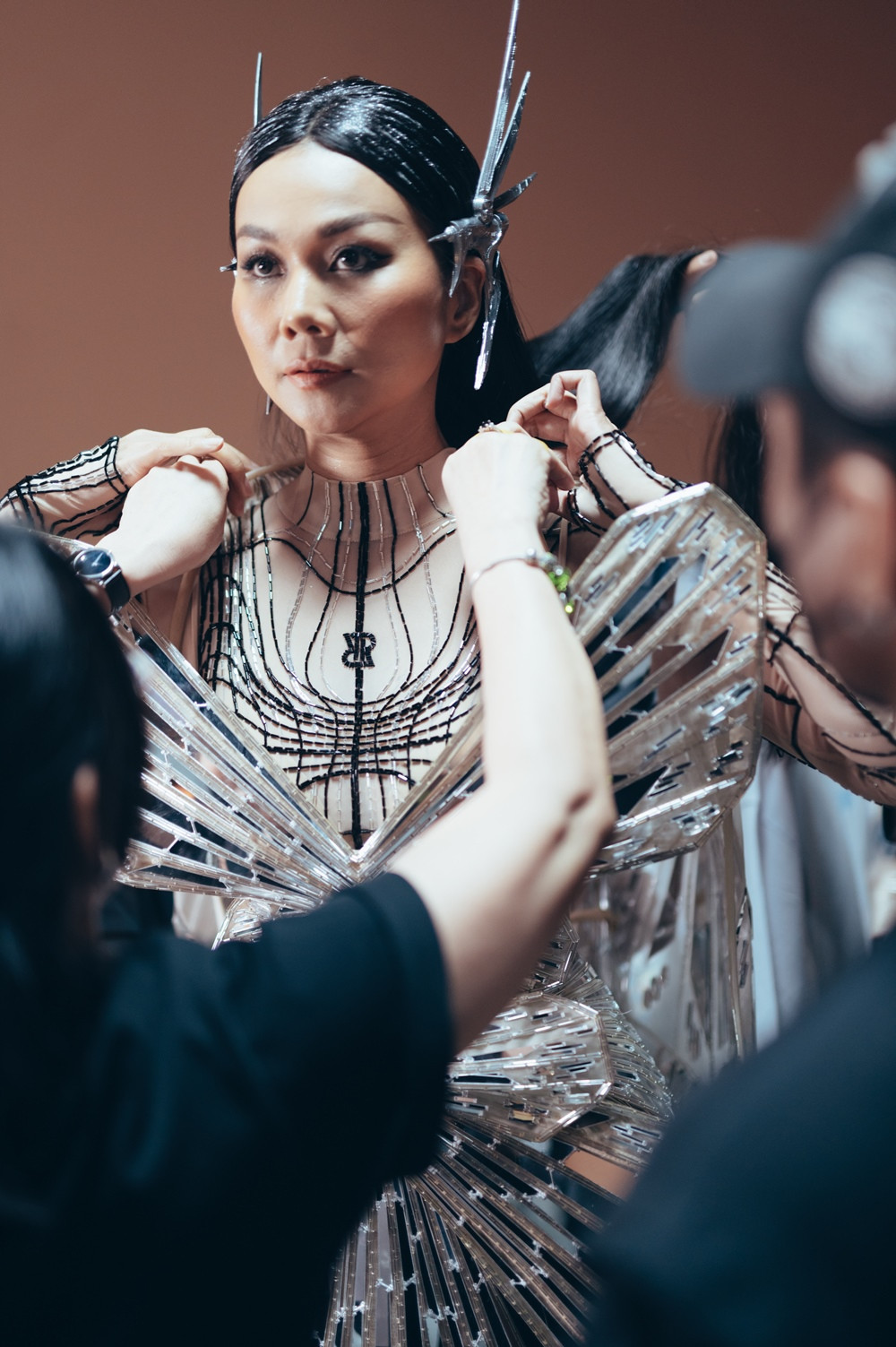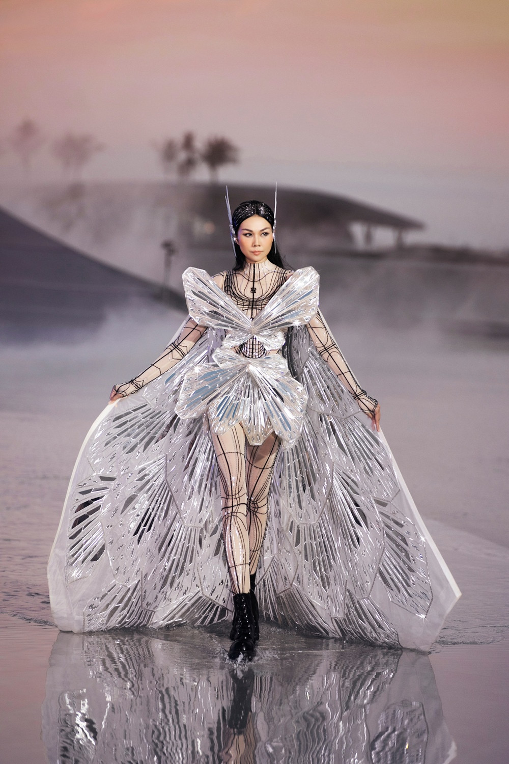 Tối 7/4, show CTPNo2 của nhà thiết kế Chung Thanh Phong diễn ra dưới ánh hoàng hôn rực rỡ trên đảo Phú Quốc. Đây là bộ sưu tập thứ 2 trong chuỗi 5 bộ sưu tập liên tiếp của Chung Thanh Phong. Lấy cảm hứng từ người ngoài hành tinh cùng phong cách Futuristic (vị lai), show diễn đưa khán giả đến với một hành tinh tưởng tượng mà ở đó không có bất kỳ khuôn mẫu vẻ đẹp nào. Mỗi người mẫu đóng vai như một sinh vật lạ, thể hiện nét đẹp của mình qua những cách khác nhau. Thanh Hằng được chọn ở vị trí vedette. Cô vào vai một sinh vật đặc biệt, biểu cảm lạnh lùng và quyền uy. Siêu mẫu điềm tĩnh trong bộ trang phục hoạ tiết cánh bướm kết hợp bodysuit bằng vải lưới thun với hoa văn kẻ sọc 3D.Chi tiết cánh bướm được người thợ đính kết cườm và meca tráng gương tỉ mỉ trong 10 ngày làm việc liên tục. Do đính kết nhiều, trang phục khá nặng, thách thức sự khéo léo của người mặc. Minh Tú đảm nhận vị trí first face. Cô chưa bao giờ làm khán giả thất vọng với cách trình diễn và thần thái chuyên nghiệp.Show còn có sự xuất hiện của Hoa hậu Việt Nam 2018 Tiểu Vy, Hoa hậu Liên lục địa 2022 Bảo Ngọc, Hoa hậu Chuyển giới Việt Nam 2020 Trân Đài...Tiểu Vy bước đi uyển chuyển trong bộ đầm lưới đính kết màu vàng ánh kim, kết hợp bộ giáp ở cầu vai và cổ. Dù mang thiết kế cồng kềnh, khó di chuyển nhưng Hoa hậu Việt Nam 2018 vẫn tự tin trình diễn trên đường băng ngập nước.Bảo Ngọc được khán giả vỗ tay không ngớt khi diện bộ giáp nhấn vào một vòng 1 với chân váy siêu ngắn bằng da bóng kèm áo choàng đen.