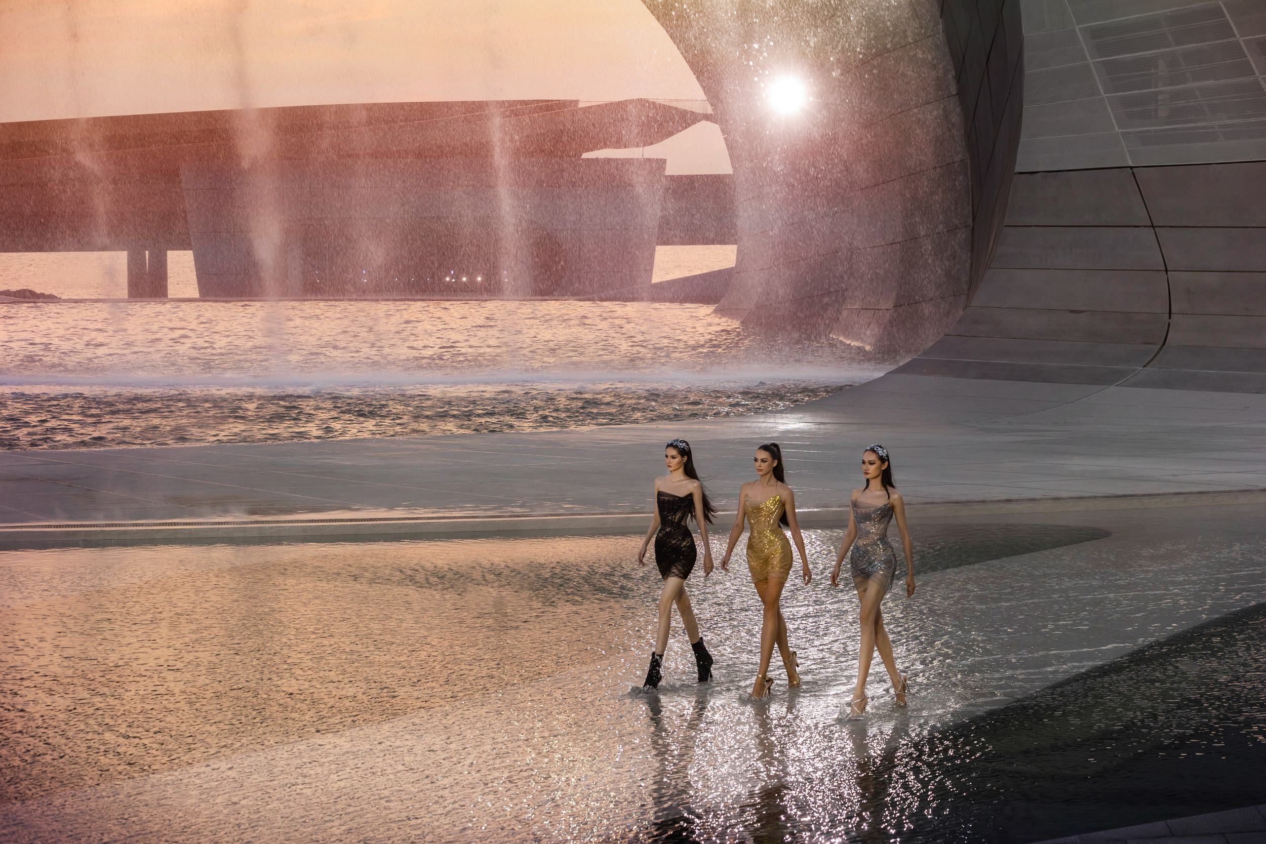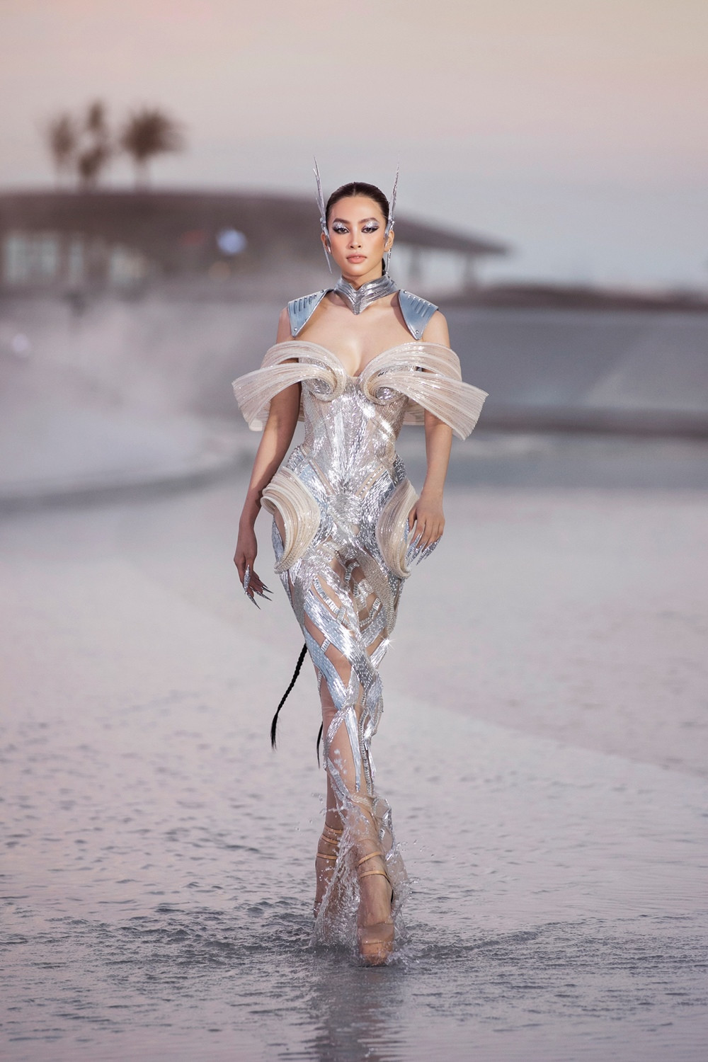 Trong show thời trang ở Phú Quốc, siêu mẫu Thanh Hằng cùng Hoa hậu Tiểu Vy đã có những màn trình diễn đặc sắc, ấn tượng trên đường băng ngập nước.