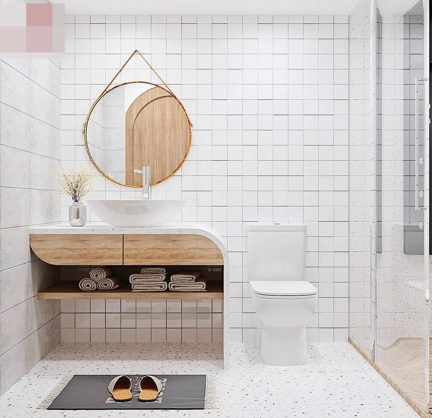 Tầng lửng được dùng để bố trí phòng ngủ master và phòng ngủ phụ.