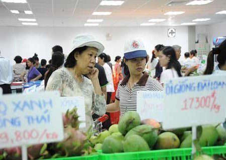 | Khách hàng chọn mua trái cây tại siêu thị |