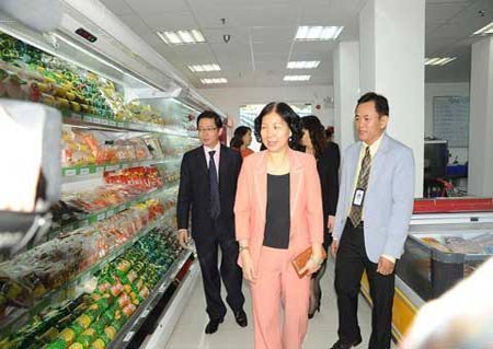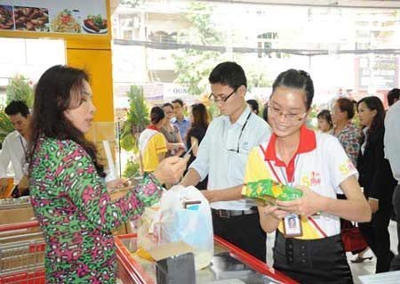 | Nhân viên siêu thị nhiệt tình hướng dẫn khách chọn lựa, mua hàng. |