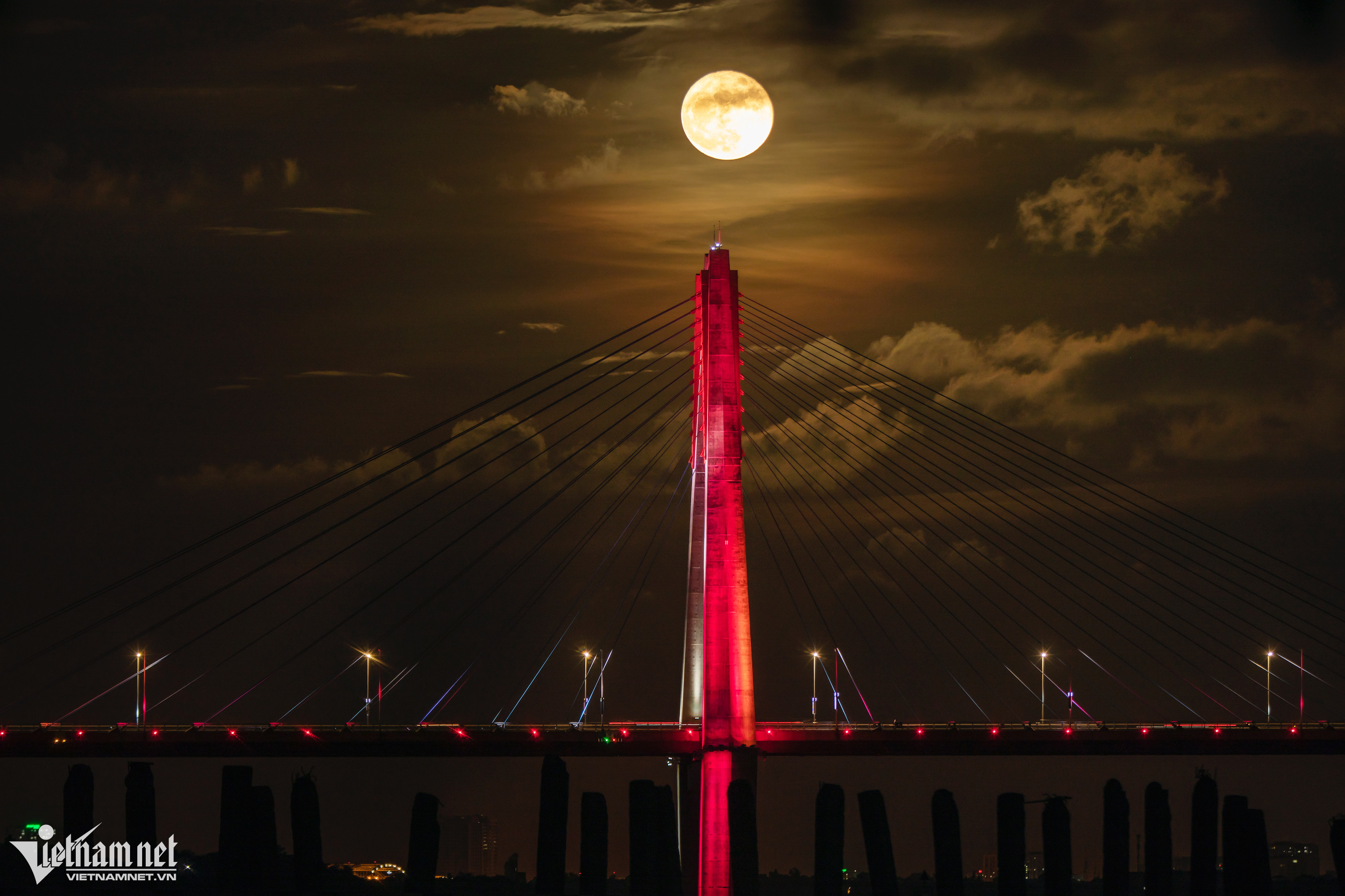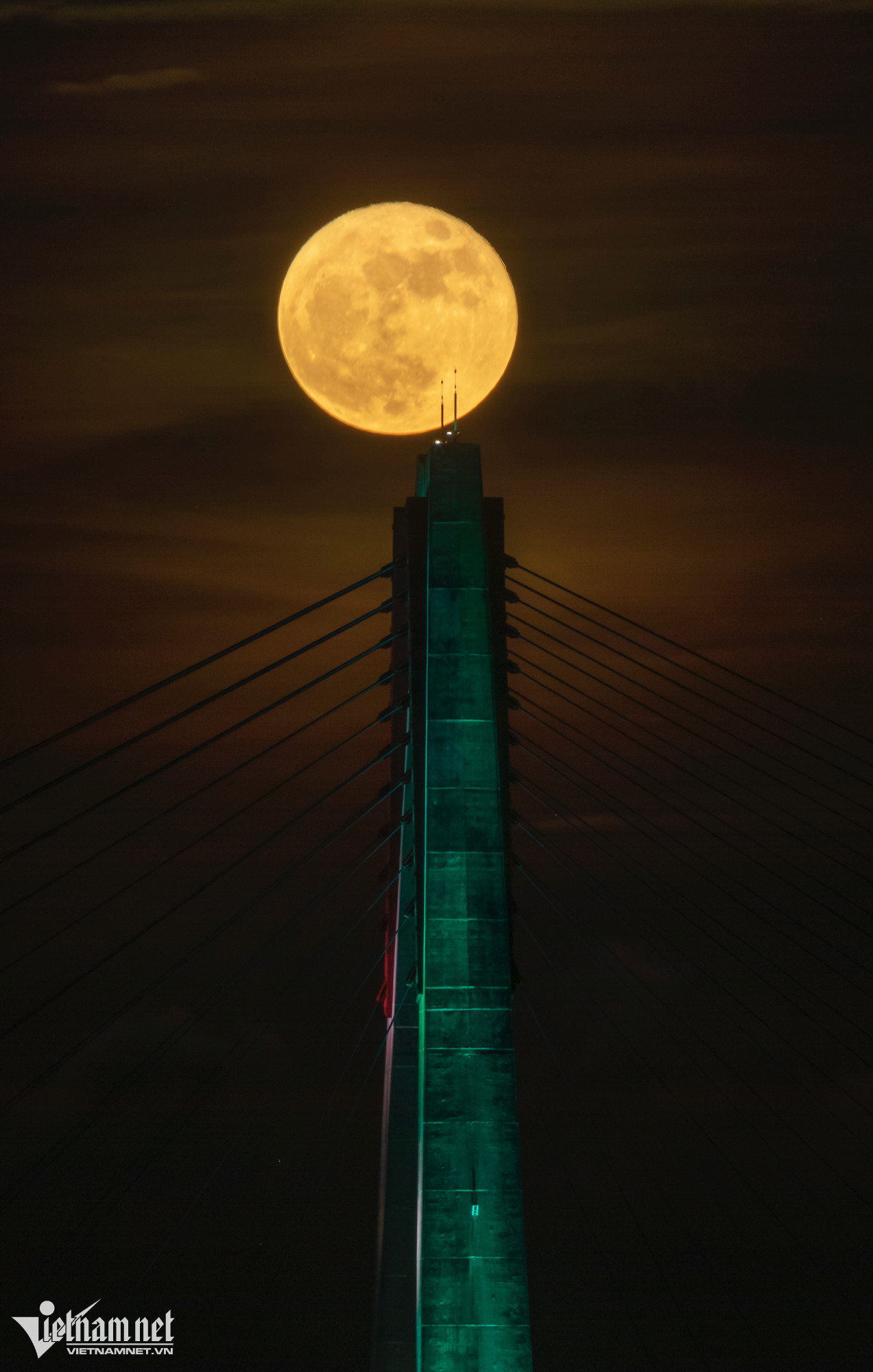 Tối 14/7, siêu trăng xuất hiện tại Hà Nội. Lúc này trời tương đối ít mây, dễ dàng giúp người dân đi qua đường dừng lại ngắm nhìn. Hình ảnh tại khu vực cầu Nhật Tân trong khoảng thời gian từ 19h30 đến 20hTrăng ban đầu mới mọc có mầu đỏ, tròn xoe. Càng lên cao trăng càng sáng và chuyển sang mầu trắngTrước đó vào 17h ngày 13/7 theo giờ Hà Nội, Mặt trăng đã tiến tới điểm gần Trái đất nhất trong năm 2022 gọi là cận điểm, ở cách hành tinh 357.264km, gần hơn khoảng 33km so với khoảng cách trung bình thông thường.Siêu trăng lớn hơn 14% và sáng hơn 30% so với khi Mặt trăng nằm ở củng điểm - điểm xa Trái đất nhất trên quỹ đạo. Siêu trăng đạt đỉnh khi Mặt trăng ở đúng cận điểm. Nhiều người dân ở các quốc gia trên thế giới có thể ngắm được thời điểm trăng lớn và sáng nhất trong nămSau 30 phút, nhiều đám mây bay qua khiến nhiều người không thể tiếp tục nhìn thấy siêu trăng ở khu vực trung tâm thủ đô