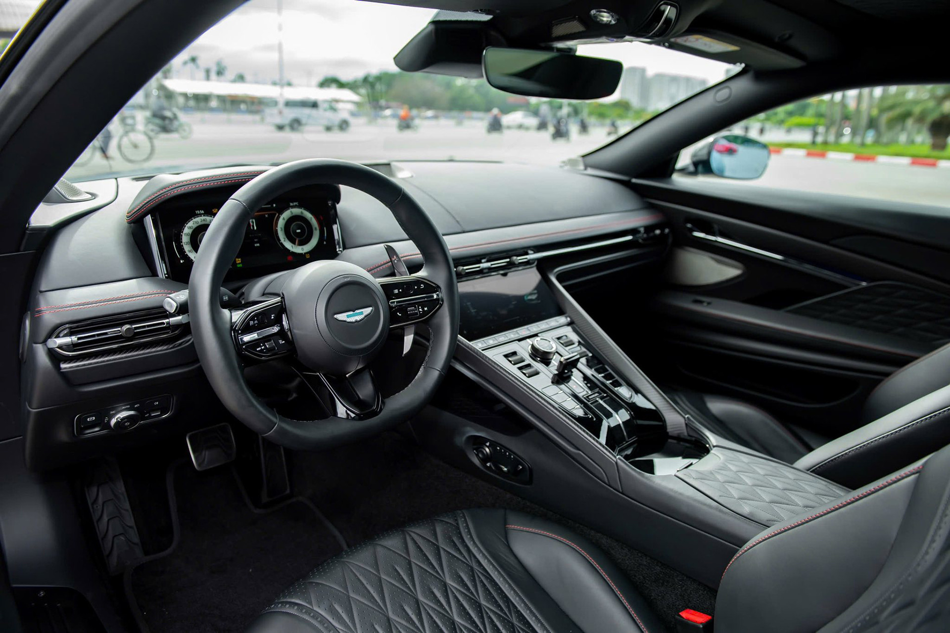 Do ít sử dụng, nội thất chiếc Aston Martin DB12 còn rất mới. Tương tự ngoại thất, khoang cabin xe có nhiều tùy chọn thêm như phối 2 tông màu (đen-đỏ), ghế ngồi thể thao nâng cấp kèm chức năng làm mát, vô-lăng thể thao có sưởi,…