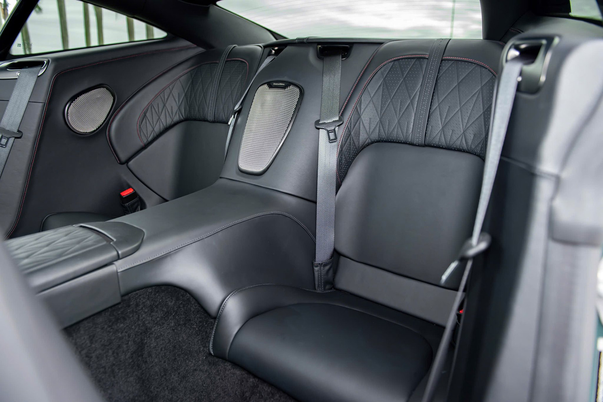 Hệ thống âm thanh tiêu chuẩn vốn có 11 loa được chủ xe chọn loại loa Bowers & Wilkins 15 loa công suất 1.170W để mang đến âm thanh chất lượng hơn. Ốp trang trí cửa làm bằng sợi carbon nhám giúp tăng tính thẩm mỹ, thể thao.