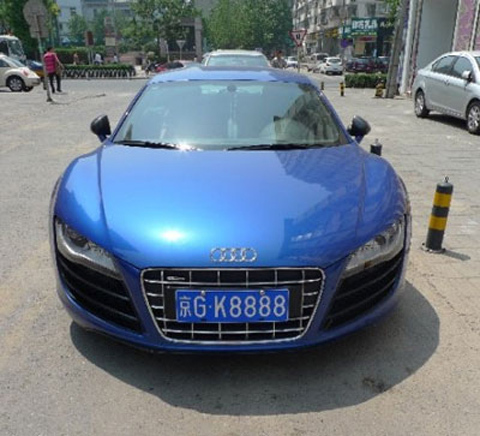 Audi R8 V10 là một trong những mẫu xe thể thao được ưa chuộng nhất thế giới. Phiên bản màu xanh dương của mẫu xe này có giá 360.000 USD tại thị trường Trung Quốc.