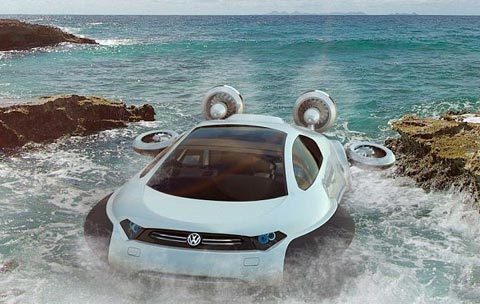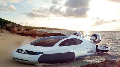Siêu xe Volkswagen Aqua hoạt động giống như một thủy phi cơ, với khả năng di chuyển tốt trên mọi địa hình, kể cả cát và dưới nước.