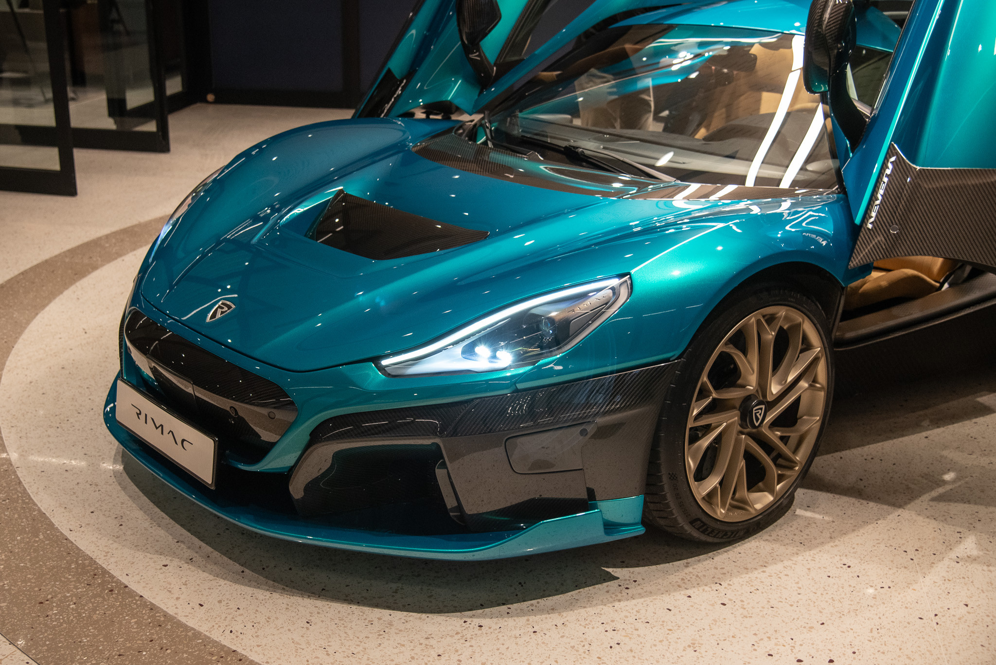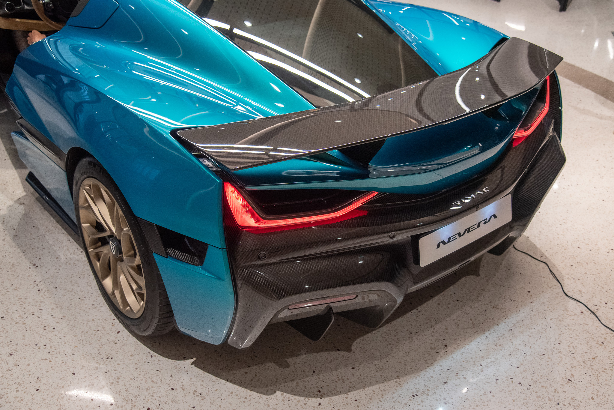 Nhiều chi tiết trên xe đóng góp có khả năng khí động học chủ động, bao gồm capo trước, các tấm điều hướng gió tại gầm xe, khuếch tán gió cản sau, cánh gió sau… Rimac Nevera có chỉ số cản gió Cd chỉ ở mức 0,3. Cùng với thiết kế khoang lái liền khối bằng sợi carbon, khối lượng của chiếc xe chỉ ở mức 2.300 kg. Mẫu xe này cũng chia sẻ nhiều công nghệ với Pininfarina Battista.